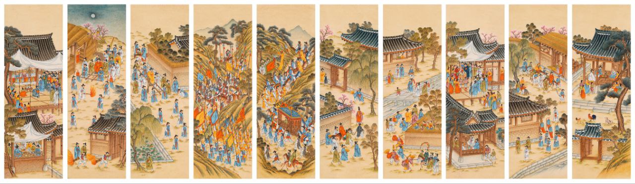 이 평생도는 조선 후기에 만들어진 열 폭짜리의 민화 원본을 모사한 것입니다.